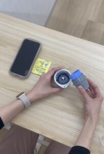 リブレの箱には、センサーアプリケーターとセンサーパックが入っておりこちらを合体させることで、準備完了です。合体させるときは、必ず平らで硬い場所で行ってください。